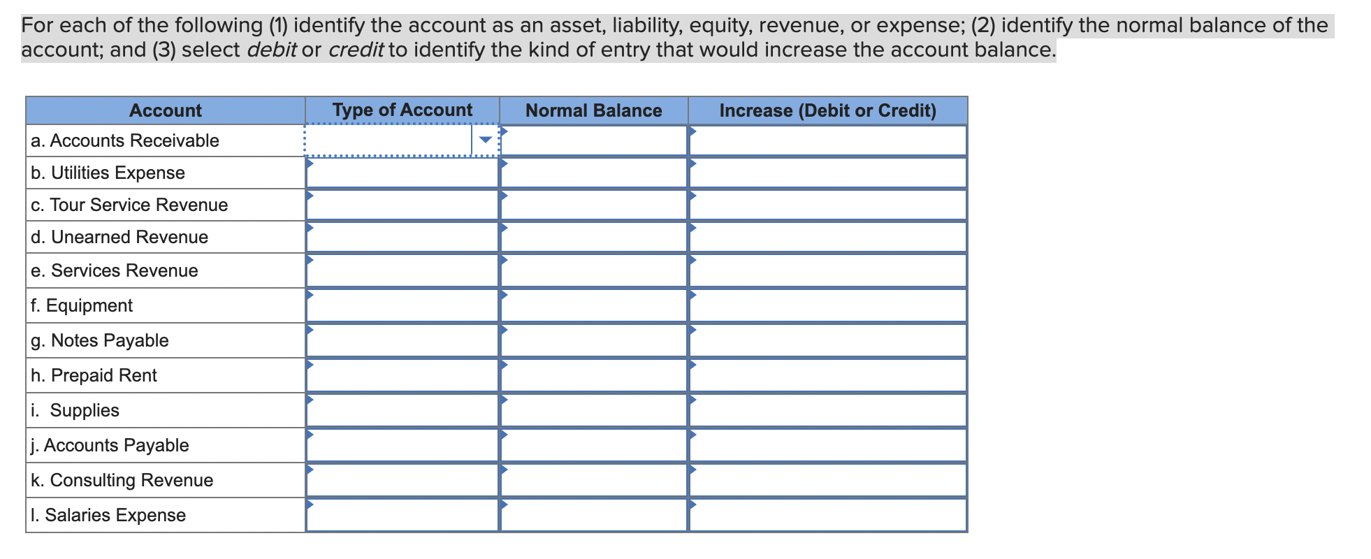 Solved For each of the following (1) identify the account as Type Of Account In Supplies The normal accounting for supplies is to charge them to expense. Web what is the accounting for supplies? Web when supplies are initially recorded in the supplies expense account, the offsetting credit is usually to the. Web the cost of office supplies on hand at the end of an accounting period should be the balance in a current asset account. Type Of Account In Supplies.
